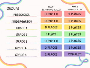 Beau rabais pour les familles choisissant l’option 2 semaines!Faites vite!Inscrivez-vous avant le dimanche 1 mars 2026!